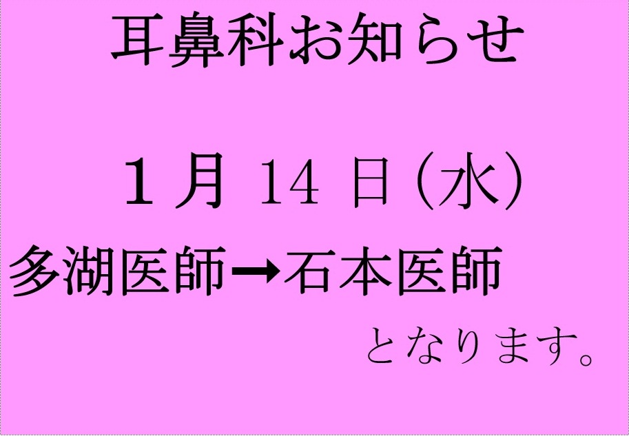 令和8年1月耳鼻咽喉科代診のお知らせ